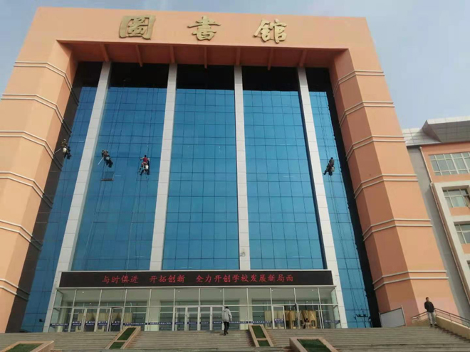 我公司完成寧夏礦業(yè)大學(xué)圖書(shū)館外墻玻璃清洗項(xiàng)目